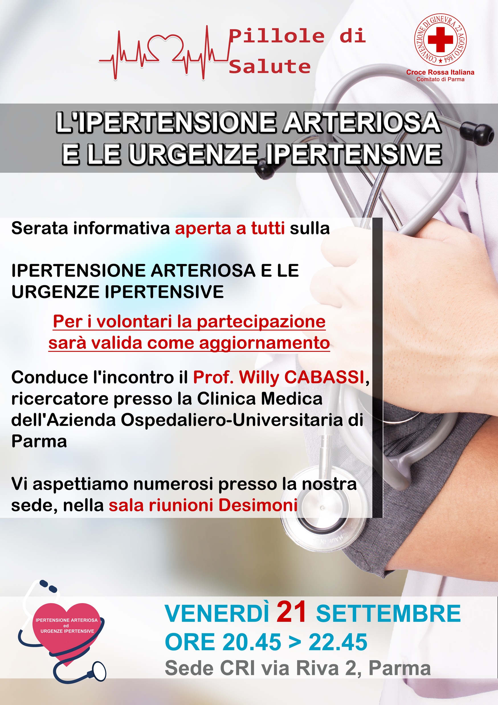 Vi aspettiamo venerdì 21 Settembre alle ore 20:45, presso la sala riunioni Desimoini nella sede CRI Parma in via Riva 2.